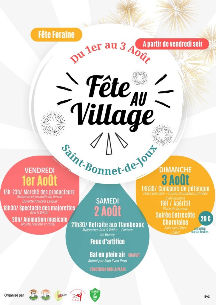 Dimanche 04 août Concours de pétanque à partir de 14h30 place Bertilon – 19h00 Apéritif et soirée entrecôte Charolaise avec animation musicale