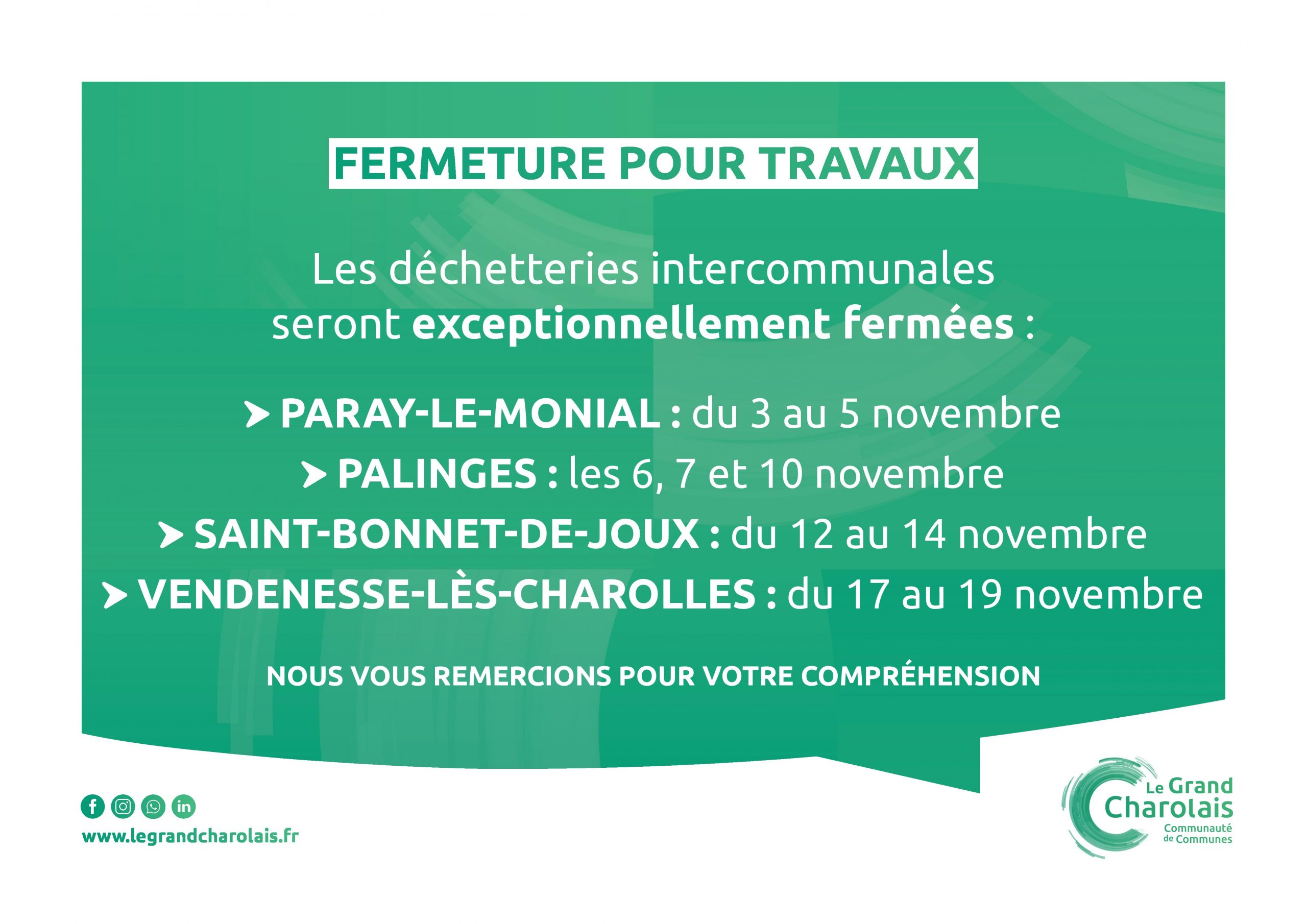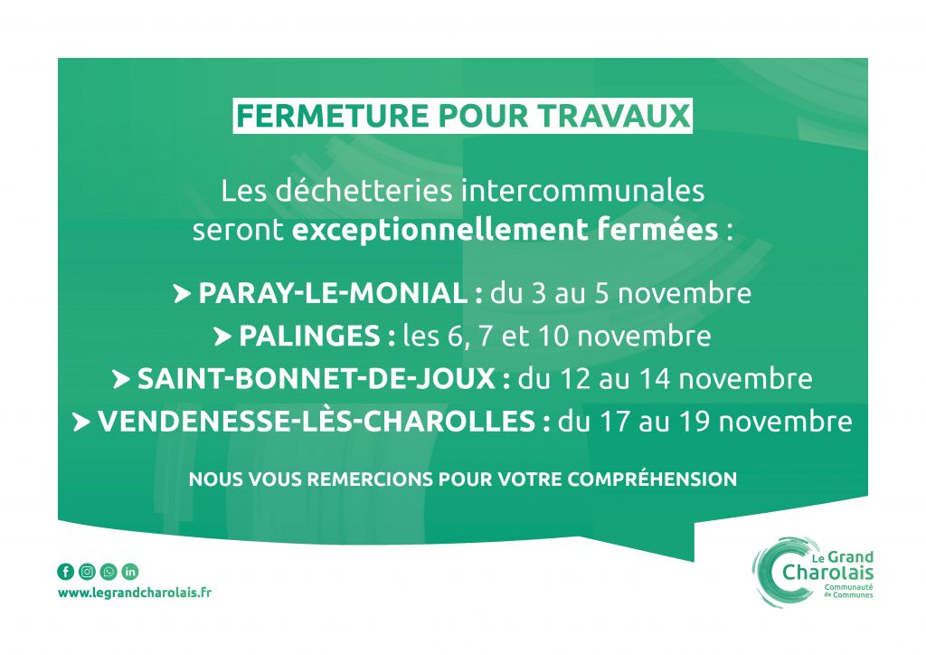 La déchetterie communautaire de St Bonnet de Joux sera fermée du 12 novembre