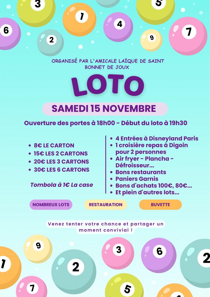 L’Amicale Laïque organise un loto samedi 15 novembre 2025