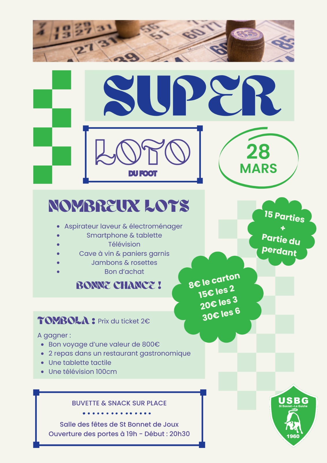 Samedi 28 mars 2026 à la salle des fêtes de St Bonnet de Joux ouvertures des portes à 19h00 et