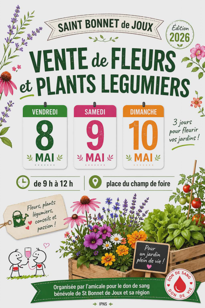 L’Amicale pour le Don de Sang Bénévole organise une vente de fleurs vendredi 08 mai, samedi 09 mai et