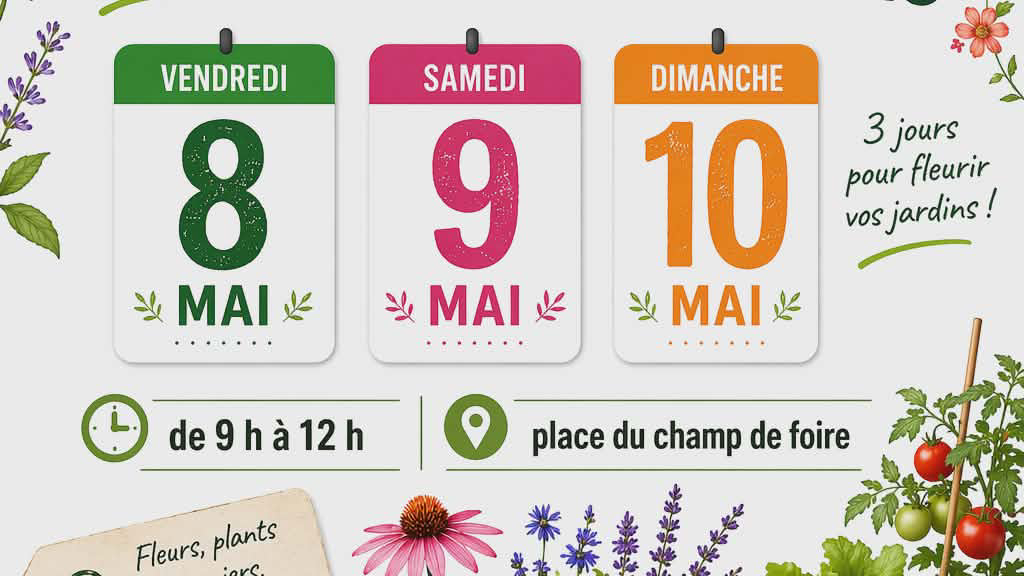 dimanche 10 mai de 9h00 à 12h00 Place du Champ de foire à St Bonnet de Joux